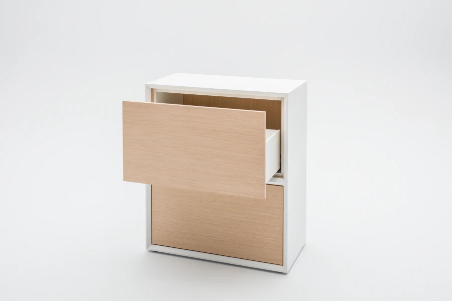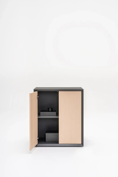 Dverové skrine, rovnako ako celú kolekciu Gravity, navrhol Dymitr Malcew. Svojou formou a detailmi dokonale dopĺňa aranžmány z ostatného rodinného nábytku. Priestranné police maximalizujú úložné schopnosti kancelárie, vďaka čomu budete mať najdôležitejšie veci po ruke a zároveň udržíte poriadok.