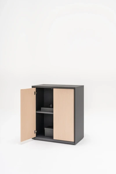 Luxusné povrchové úpravy a elegantný tvar regálu podčiarknu profesionálny charakter priestoru a zároveň zvýšia jeho funkčnosť. Vďaka tomu je skrinka dokonalým doplnkom do manažérskych kancelárií a iných exkluzívnych kancelárskych priestorov.