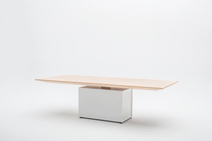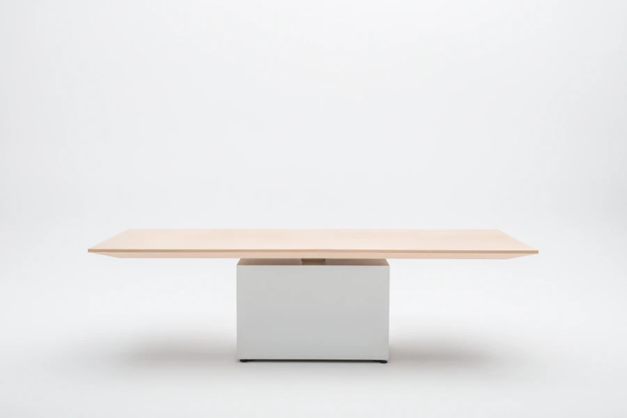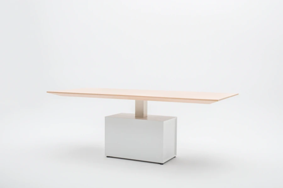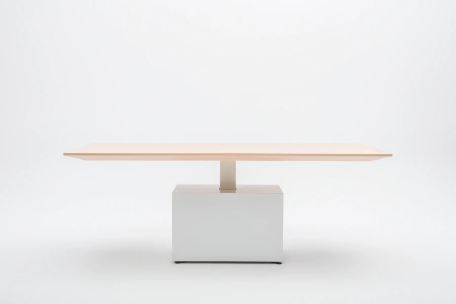 Elektricky výškovo nastaviteľná pracovná doska umožňuje vytvoriť ergonomický pracovný priestor počas konferencií alebo firemných stretnutí. Stôl je určeným nielen do moderných kancelárií, ale môže doplniť aj domáce kancelárske interiéry.