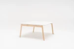 Lavica Ogi B s drevenou nohou je funkčný pracovný stôl. Charakter jej dodáva netypická kombinácia podstavy z prírodného masívneho jaseňového dreva a pracovnej dosky z MFC. Minimálna konštrukcia zabezpečuje maximálnu funkčnosť, čím vznikajú dve pracovné miesta. Možno ju ďalej rozšíriť inštaláciou praktických doplnkov alebo akustických panelov, ktoré zároveň ohraničia priestor. Jednoduchý tvar poskytuje široké možnosti usporiadania, najmä v open space kanceláriách a coworkoch.