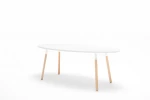 Perfektne sa hodí do všetkých konferenčných miestností a kancelárií. Široká škála tlmených farieb mu dodáva minimalistický charakter. Pracovná doska je k dispozícii v dvoch tvaroch: oválnej a obdĺžnikovej. Výrazné drevené nohy, ktoré sú k pracovnej doske pripevnené kovovým rámom, sú vyrobené z odolného jaseňového dreva. Tento nábytok je určený používateľom, ktorí sa zameriavajú na odolnosť výrobku v kombinácii s funkčnosťou a štýlom.
