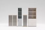 Vitrína je prvok kancelárskeho vybavenia, ktorý prináša funkčnosť a dokonalú estetiku. Sklenená predná časť, ktorá zdôrazňuje prestížny charakter kolekcie, umožňuje vystaviť uložené predmety.