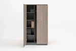 Tým sa úložné možnosti priestoru. Rovnako ako všetok ostatný nábytok z kolekcie Status, aj šatníková skriňa je k dispozícii v niekoľkých elegantných povrchových úpravách inšpirovaných prírodným drevom. Jej minimalistický dizajn zvýrazní profesionálny charakter priestoru.